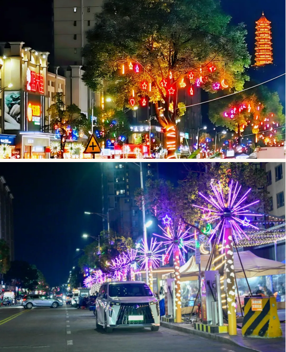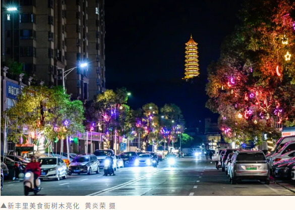 现在的新丰里美食街,白日烟火气十足,夜晚灯火灿烂诱人。亮化工程不只点亮了街区的夜色,更点亮了市民的幸福生活与城市的经济生机,成为夜间经济高水平开展的生动实践。